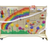 Diese kreative STEM-Tafel verbindet eine langlebige Holzkonstruktion mit einer großen perforierten Fläche, an der Kinder Steckstifte, Zahnräder, Schrauben, Umlenkrollen und weitere Elemente leicht befestigen können. Lehrkräfte und Eltern können inspirierende Aufgaben vom einfachen Muster bis hin zu komplexen mechanischen Experimenten vorbereiten.