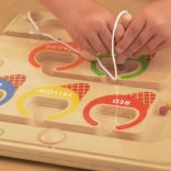 Deutlich markierte Farbzonen und Kugeln in fünf Farben führen Kinder ganz natürlich zum Erkennen und Sortieren von Farben.