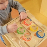 Die geschlossene Konstruktion mit transparenter Abdeckung ist sicher und robust, die Kugeln bleiben im Inneren und nichts geht verloren. Beim Bewegen der Kugeln entlang der Bahnen in den Farben Rot, Gelb, Blau, Grün und Orange trainieren Kinder Feinmotorik, Koordinationsfähigkeiten, Geduld und Konzentration.