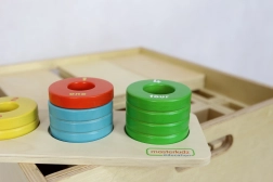 - Sortieren nach Farbe und Zahl, Aufstecken auf Stifte