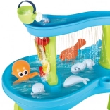 Der Wassertisch Oktopus von der Marke WOOPIE bietet ein einzigartiges Erlebnis mit Wasser und Sand für Kinder. Mit 18 Zubehörteilen wie 3 Förmchen, Oktopus, Gießkanne, Körbchen, Sandaufheber und 2 Schaufeln genießen Kinder endlose Spielmöglichkeiten. Das in die obere Tischhälfte gegossene Wasser kann durch die Löcher im Boden fließen oder die Wassermühlen drehen. Ideal zum Spielen zu Hause und im Freien!