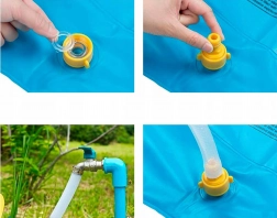 Die Matte hat einen eingebauten Anschluss, der zu fast jedem auf dem Markt erhältlichen Gartenschlauch passt.