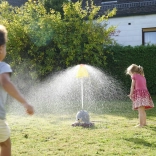 Der Hut des Sprinklers schießt Wasser und kreiert somit eine beeindruckende visuelle Show und sorgt für Erfrischung auch an den heißesten Tagen.