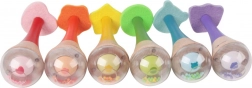 Die bunten Perlen im Inneren der Maracas erzeugen nicht nur Geräusche, sondern ziehen auch visuell die Aufmerksamkeit des Kindes auf sich, wodurch die Sinne stimuliert werden.