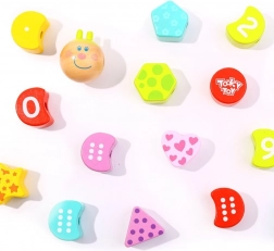Nummerierte und geformte Teile werden auf die Schnur aufgefädelt, und Kinder üben ganz natürlich das Zählen, Sortieren und die Reihenfolge. Ideal für die ersten Mathe-Schritte.