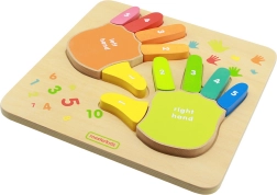 Die hölzerne Fingerzähltabelle MASTERKIDZ ist das ideale Hilfsmittel für Vorschulkinder und jüngere Schulkinder. Farbige Fingerelemente sind nummeriert und benannt, ebenso wie die gesamten Handflächen – rechte und linke. So verbinden Kinder leicht die Namen der Finger mit den Zahlen und können die erworbenen Fähigkeiten auf ihre eigenen Hände übertragen.