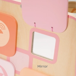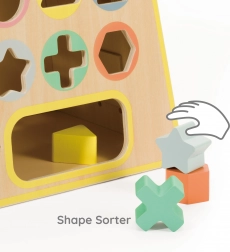 Dank der vielfältigen Aktivitäten – vom Formensortierer und der Kugelbahn über drehbare Zahnräder, Schieber und das Perlenlabyrinth – trainieren Kinder logisches Denken, Geduld und Konzentration. Geheime Türen und ein Spiegel regen Neugier und Versteckspiele an.