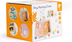 Entdecken Sie vielseitiges Lernen durch Spielen mit dem 6-in-1 Holz-Aktivitätswürfel von CLASSIC WORLD. Diese bunte Lernbox bietet einen Perlenlabyrinth, Zahnräder, Schiebeelemente, geometrische Formen und geheime Türen – ideal zur Förderung der Feinmotorik, der Koordination sowie des Form- und Farbverständnisses.