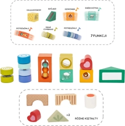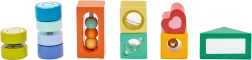 Dieses hochwertige Set enthält vielfältige Formen und Elemente für die Sinneswahrnehmung – Durchsichten, Klang- und bewegliche Details – die Kinder auf natürliche Weise zum Beobachten, Sortieren und Entdecken anleiten. Das Spiel mit den Bausteinen fördert logisches Denken, Problemlösefähigkeiten sowie die Hand-Auge-Koordination.