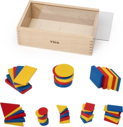 Entdecken Sie ein cleveres Spielzeug für Kinder ab 3 Jahren: die Holz-Logikbausteine von VIGA TOYS mit geometrischen Formen. In der robusten Holzbox finden Sie 48 farbige Teile zum Sortieren, Legen und Erkennen von Formen. Das Spielzeug fördert logisches Denken, Feinmotorik und Koordinationsfähigkeiten und sorgt dank sicherer Farben in satten Tönen für viel Freude beim Lernen und Spielen.