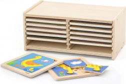Jedes Puzzle enthält farbenfrohe Tierillustrationen, die Lernen und Entdecken unterstützen.