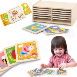 Dieses Set enthält 12 Holztafeln, von denen jede 4 Puzzleteile hat. Ihr Kind kann seine feinmotorischen Fähigkeiten und sein logisches Denken verbessern, indem es die richtigen Teile auf die entsprechenden Tafeln legt. Leuchtende Farben und niedliche Illustrationen begeistern kleine Nutzer und sorgen für Spielfreude.