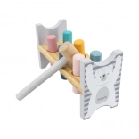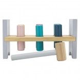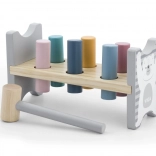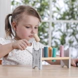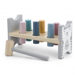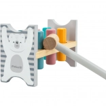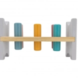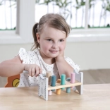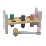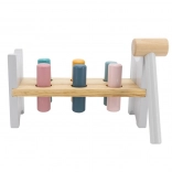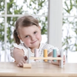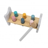 Die bunte Holzbank von VIGA ist so gestaltet, dass sie die Kinder anspricht und die Koordination entwickelt. Die Hauptaufgabe besteht darin, einzelne Stifte durch die Löcher zu hämmern, was die Kinder begeistert und zugleich ihre motorischen Fähigkeiten trainiert.