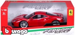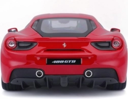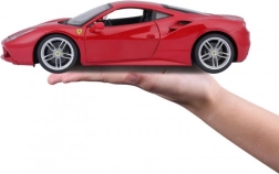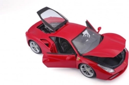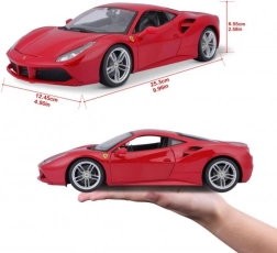Detailgetreue Ausführung des roten Ferrari 488 GTB mit authentischen Proportionen, Logos und Sportfelgen im Maßstab 1:18.