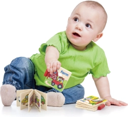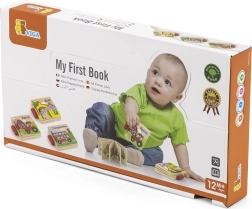 Mein erstes Holzbuch von VIGA unterstützt frühes Lernen auf spielerische Weise. Robuste Holzseiten mit farbigen Illustrationen und englischen Beschriftungen helfen Kindern, Farben, Tiere und Verkehrsmittel kennenzulernen. Das Büchlein ist mit einer festen roten Schnur verbunden, die das Blättern mit kleinen Händchen erleichtert.