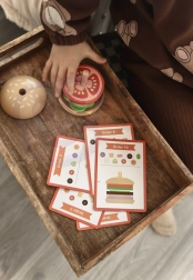 Die WOOPIE GREEN Holz-Burger-Puzzle bringt Kindern ab 3 Jahren eine leckere Portion Lernen und Spaß. Anhand der Anleitungskarten wählen kleine Köche die richtigen Zutaten, vergleichen deren Farbe und Dicke und stapeln sie in der richtigen Reihenfolge. Ebenso leicht können sie eigene „Rezepte“ kreieren, die Kreativität und Vorstellungskraft fördern.