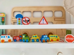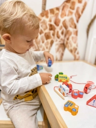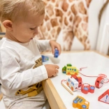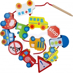 Dieses kreative Set bringt Kindern ab 2 Jahren Freude am Auffädeln und Kombinieren. Dank leuchtender Farben und verschiedener Fahrzeugformen lernen kleine Hände Präzision und Geduld, während Kinder spielerisch Grundlagen der Verkehrserziehung aufnehmen. Natürliches Holz und glatte Kanten sorgen für eine angenehme und sichere Haptik.