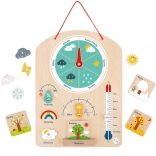 Mit drehbaren Zeigern halten Kinder das aktuelle Wetter, die Temperatur und die Jahreszeit fest. Ein toller Ritualbaustein für gemeinsame Morgen- und Abendgespräche und zur Erweiterung des Wortschatzes.