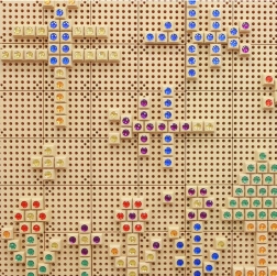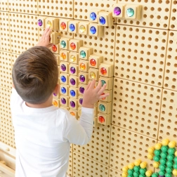 Plättchen mit Stiften sorgen für schnelles An- und Abstecken an kompatiblen Pegboards – ideal für kleine Kinderhände.