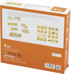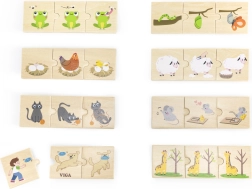 Die Teile sind aus Buchenholz gefertigt und mit ungiftigen Farben versehen – sie halten dem täglichen Spiel stand und sind auch für die Kleinsten sicher. Beim Zusammenlegen trainieren Kinder Feinmotorik, Wahrnehmung und Zusammenhänge zwischen den Bildern. Ideal für gemeinsames Spielen von Eltern und Kind sowie für eigenständiges Entdecken.