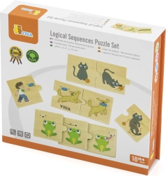 Das Logik‑Sequenz-Set aus Holz hilft Kindern, die Reihenfolge von Ereignissen zu verstehen und sie richtig zu erzählen. Dank der farbigen Tierillustrationen erkennen Kinder leicht, was zusammengehört, und entwickeln ganz natürlich ihre Beschreibungsfähigkeit und Erzählkompetenz.