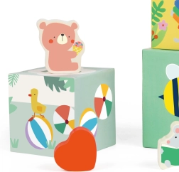 Dieses Set von Würfeln mit Waldthema stellt verschiedene Elemente wie Pflanzen, Tiere und Insekten dar, die Kinder auf den verschiedenen Seiten der Würfel entdecken. Die Würfel können zu einem hohen Turm gestapelt oder zur Formsortierung verwendet werden, was die motorischen Fähigkeiten und das logische Denken der Kinder fördert.