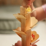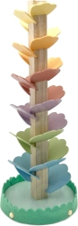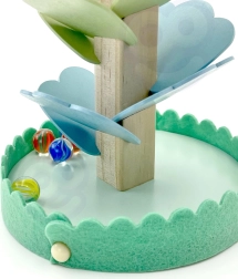 Jeder Aufprall der Kugel auf ein farbiges „Blatt“ erzeugt einen sanften Klang, der an ein Zimbelspiel erinnert. Kinder verbinden so visuelle Reize mit musikalischen und entwickeln ihre sensorische Wahrnehmung.