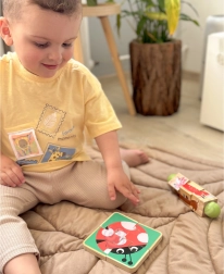 Sichere Verarbeitung aus Holz und Textil, satte Farben und eine kompakte Box mit Griff machen es zu einem praktischen Geschenk für jeden Tag. Kinder spielen, sortieren, bauen und entdecken – und entwickeln dabei ganz natürlich Fähigkeiten für weiteres Lernen.