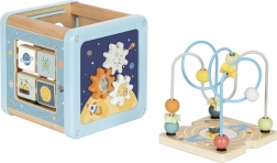 Rotierende Blöcke mit Weltraummotiven und bunte Zahnräder fördern die Sinneswahrnehmung und den Spielspaß. Kinder trainieren Fingerkraft und Geschicklichkeit.