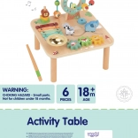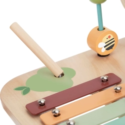 Der Tisch folgt den Prinzipien der Montessori-Pädagogik: Das Kind erkundet selbstständig, sortiert, baut und erzeugt Klänge. So entwickelt es Feinmotorik, Logik sowie auditive und visuelle Wahrnehmung. Alle Komponenten sind auf kleine Hände abgestimmt und mit unbedenklichen Farben bemalt.