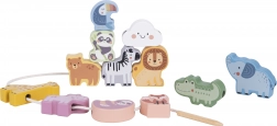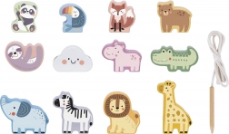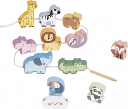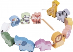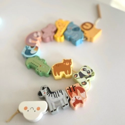 Das Auffädeln der Holztiere auf die Schnur trainiert ganz natürlich den Griff, die Hand-Auge-Koordination und die Bewegungsgenauigkeit – ideale Vorbereitung auf Zeichnen und Schreiben.