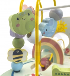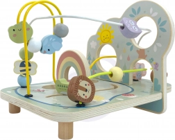 Das Wald-Perlenlabyrinth aus massivem Holz überzeugt durch hochwertige Verarbeitung, Pastellfarben und liebevolle Illustrationen von Tieren, Regenbogen und Sonne. Kinder schieben Perlen und Formen über drei verwinkelte Bahnen, trainieren die Fingerfertigkeit und Konzentration und erleben Freude beim Erreichen des Ziels.