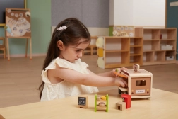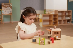 Hochwertiges Massivholz und sichere Oberflächen sorgen für lange Haltbarkeit selbst bei täglichem Spiel. Das Set fördert soziale Interaktion, Kommunikation und Fantasie – Kinder können „Kaffee kochen“, Gebäck verkaufen und eigene Café-Geschichten erfinden.