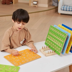 Der Ständer ist mit praktischen Stiften ausgestattet, die ein stabiles Einschieben der einzelnen Platten ermöglichen, sodass jede Tafel oder jedes Puzzle seinen eigenen Platz hat. Kapazität bis zu 10 Stück erleichtert den Wechsel von Spielen und Aktivitäten und ermöglicht zugleich eine effiziente Organisation und attraktive Präsentation.