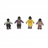 Die Puppen passen perfekt ins Puppenhaus oder eignen sich als eigenständiges Spielzeug. Kompakte Maße liegen gut in Kinderhänden, und die robuste Verarbeitung hält täglichem Spielen stand. Die farbige Kleidung unterstützt die visuelle Wahrnehmung und das Unterscheiden von Farben.
