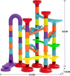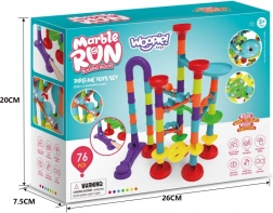 Das kreative Kugelbahn-Bauset von WOOPIE ist das ideale Spielzeug für neugierige Kinder. Dank der leuchtenden Farben und der unterschiedlichen Formen von Rohren, Trichtern und Kurven bauen Kinder mühelos originelle Strecken und beobachten, wie die Kugeln nacheinander hinuntersausen.