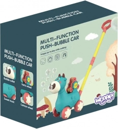 Der Kuh-Lauflernwagen von WOOPIE ist der ideale Helfer beim Laufenlernen. Kinder können ihre Lieblingskuh vor sich herschieben, die während der Fahrt Blasen aus dem Maul pustet. Einfach den Behälter mit Lösung aufschrauben (im Set sind 2 Behälter enthalten) und der Spaß kann beginnen. Für Stimmung sorgen angenehme Melodien, die sich per Knopf ein- und ausschalten lassen.