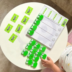 • Set enthält 1 Spielbrett, 4 Frösche mit verschiedenen Ausdrücken, 24 Mustervorlagen
