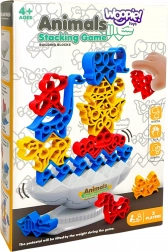 Zu Beginn platziert jeder Spieler sein Tier auf dem Stein und wechselt sich dann beim Stapeln ab. Fällt der Turm um, verliert derjenige, der den Einsturz verursacht hat. Das Spiel beinhaltet: