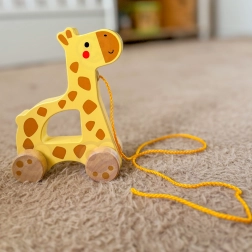 Beim Ziehen an der Schnur rollt die Giraffe sanft und motiviert Kinder zu eigenständiger Bewegung, stärkt das Gleichgewicht und die Hand-Auge-Koordination.