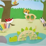 Die robuste Holzausführung mit glatten Kanten und ungiftiger Oberfläche sorgt für sicheres Spielen. Dank des durchdachten Systems lässt sich die Tafel leicht an der Wand montieren und spart Platz – die perfekte Wahl für Klassenzimmer, Kinderecken und Kinderzimmer zu Hause.