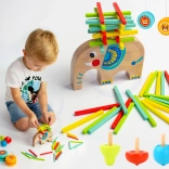 Der Elefant aus Massivholz dient als unterhaltsame Basis zum Balancieren und Bauen. Kinder trainieren Geduld, Gleichgewicht und Genauigkeit beim Stapeln der bunten Stäbchen.