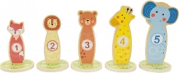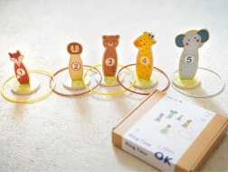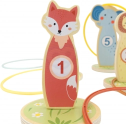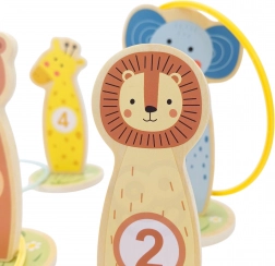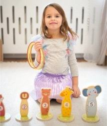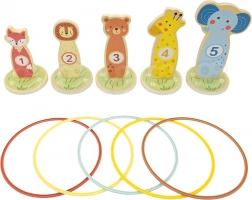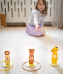 Jede Tier-Zielscheibe hat eine Zahl – beim Werfen der Ringe trainieren Kinder Konzentration, Auge-Hand-Koordination und üben gleichzeitig das Punktezählen auf spielerische Weise.