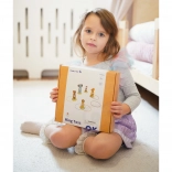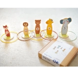Dieses Holz-Wurfspiel mit lieben Tieren (Fuchs, Bär, Löwe, Giraffe und Elefant) lehrt Kinder, Ziele zu treffen, und fördert Feinmotorik sowie Konzentration. Jede Zielscheibe hat eine Zahl – so lernt das Kind ganz natürlich Punkte zu zählen und weitere Würfe zu planen. Die Teile können beliebig aufgestellt werden, sodass sich die Schwierigkeit leicht variieren lässt.