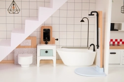 Jede Etage hat eine klar definierte Funktion – von Küche und Bad bis hin zu Wohnzimmer und Schlafzimmer mit Balkon. Kinder können mühelos ihre eigenen Geschichten erschaffen.