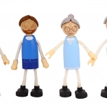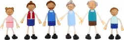 Enthalten ist eine Familie aus sechs Figuren mit beweglichen Gliedmaßen, die soziale Fähigkeiten und kreatives Spiel fördert.