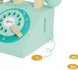 Dieses Holztelefon im klassischen Stil bietet Kindern ein authentisches Spielerlebnis. Dank Drehscheibe, Hörer mit Schnur und dem Einwerfen von Münzen lernen Kinder Gespräche zu führen, entwickeln soziale Kompetenzen und trainieren die Auge-Hand-Koordination. Ganz ohne Batterien – es ertönt eine angenehme mechanische Glocke.