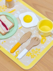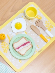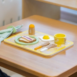 Lassen Sie Ihre Kinder in warmen, kreativen Spielspaß mit dem Holz-Frühstücksset von Classic World eintauchen. Dieses Set bietet nicht nur viele Spielmöglichkeiten, sondern hilft Kindern auch, soziale Fähigkeiten und gute Tischmanieren zu entwickeln. Ideal für Kinder ab 3 Jahren, enthält dieses Set einen Teller, Besteck, einen Becher, Salz, Pfeffer, ein Ei, Toastscheiben, eine Speckscheibe, eine Serviette und ein Serviertablett.