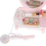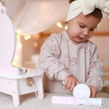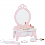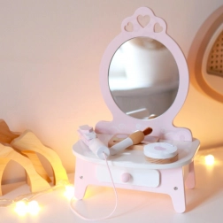 Diese wunderschöne Kindertoilette in Rosa ist mit einem Spiegel und 11 verschiedenen Accessoires ausgestattet, darunter Kamm, Lippenstift, Haarglätter, Puderquaste und weitere. Alle Accessoires sind aus hochwertigem Holz gefertigt und ihr Design in Pastelltönen verleiht dem Spielzeug ein zauberhaftes Aussehen. Die Toilette bietet ausreichend Stauraum für alle geheimen kosmetischen Tricks Ihres kleinen Models.