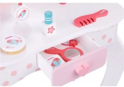 Unser Toilettentisch besticht durch ein elegantes rosa-weißes Design mit einer soliden Holzkonstruktion, die Eleganz und Haltbarkeit verleiht.